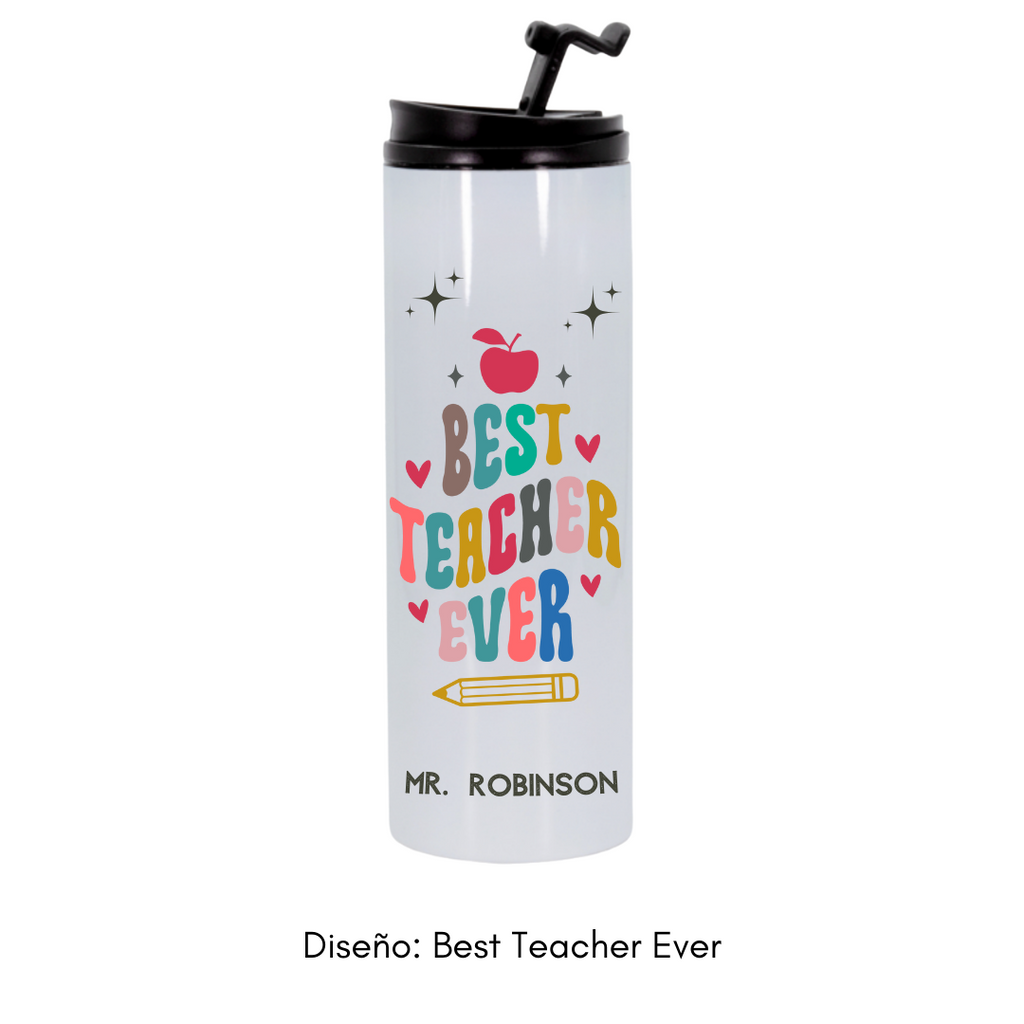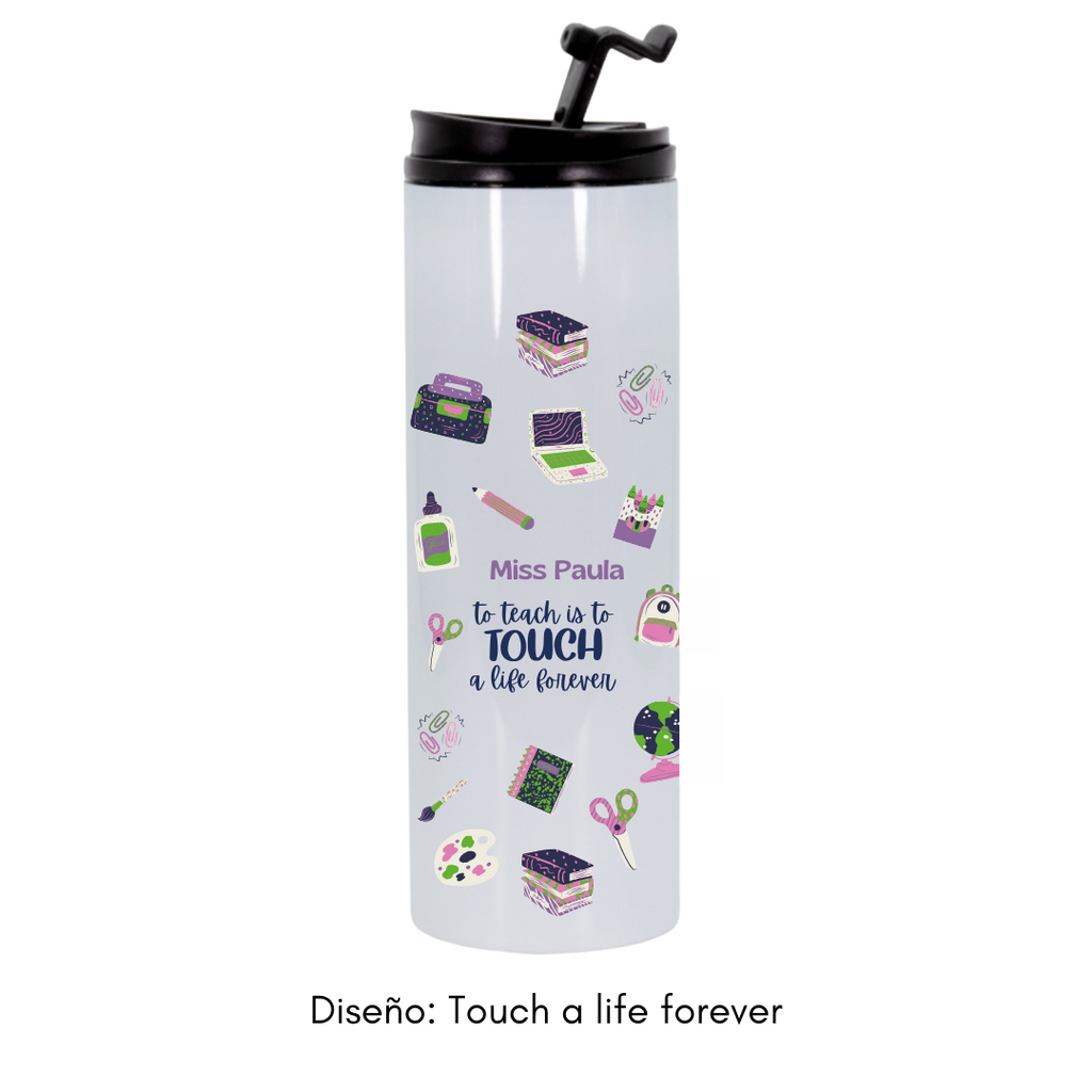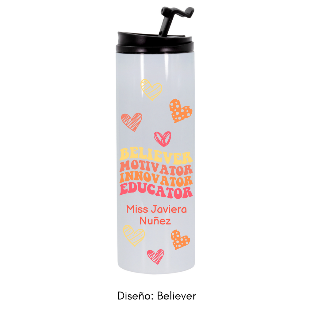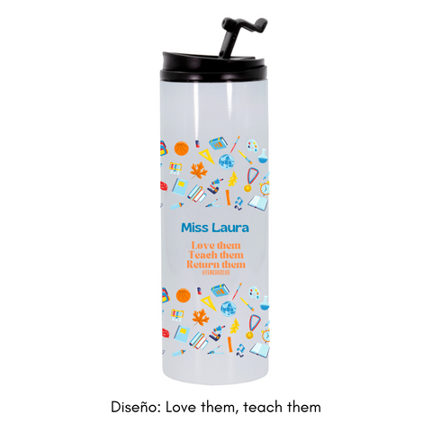 Botella de acero con doble cámara con capacidad de 475ml, tapa grande de rosca para poder meterle hielo y abertura de un click. Ideal para bebidas frías y/o calientes, mantiene la temperatura por varias horas.