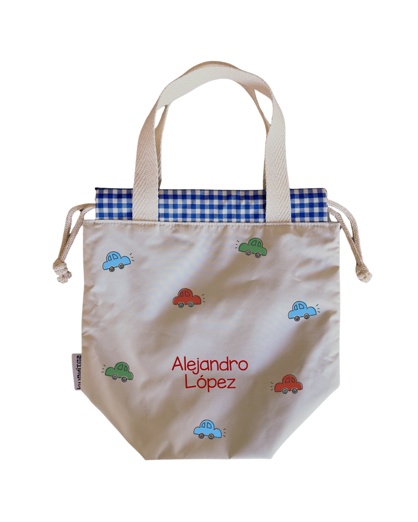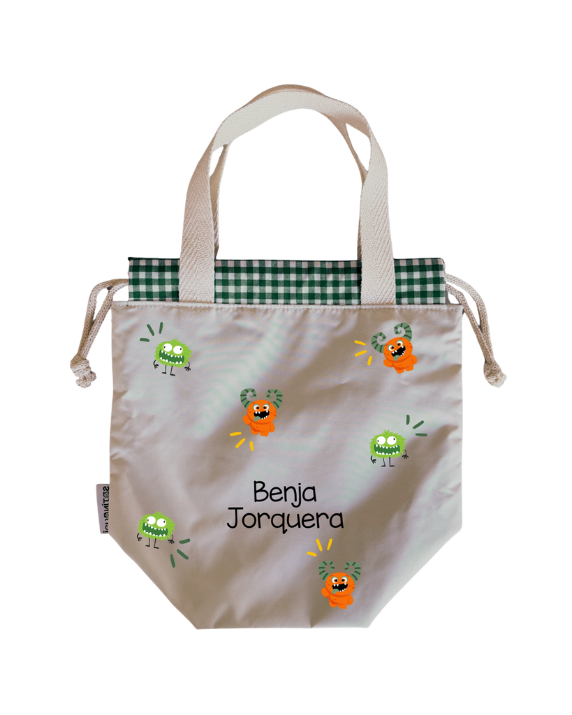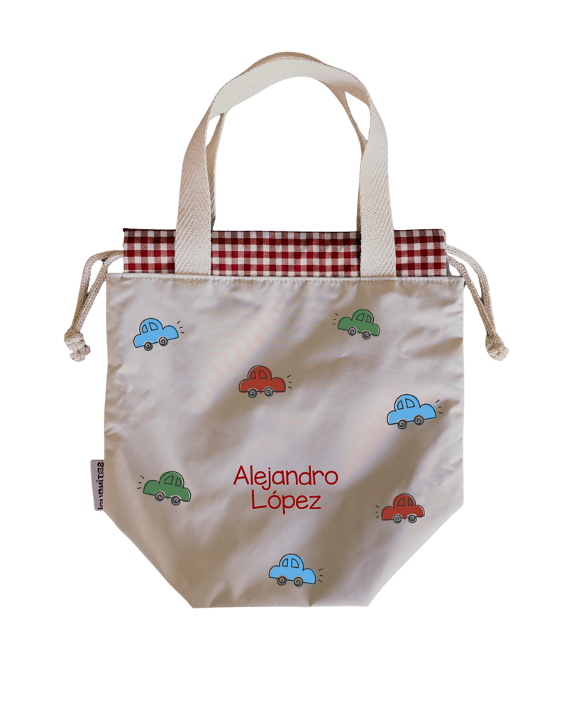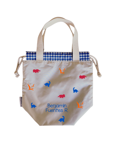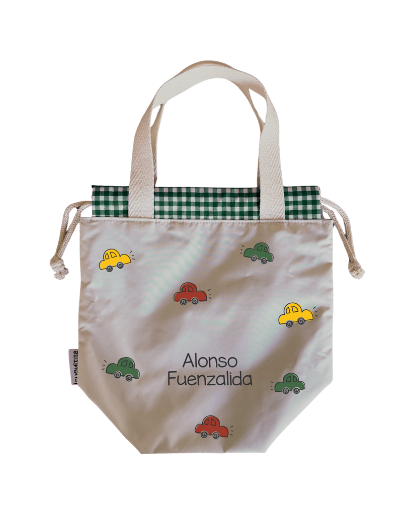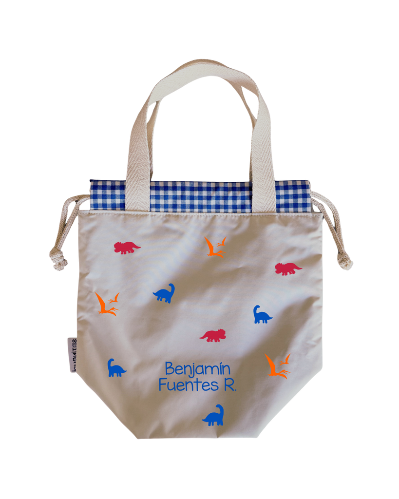Bolsas para colación, estilo loncheras, diseñadas para ser ligeras y con impermeabilidad total en su interior y exterior. Asas y cordones de algodón.
