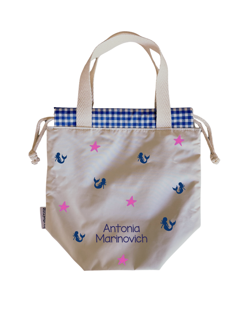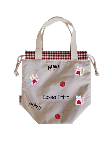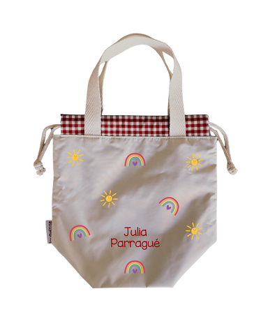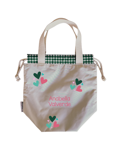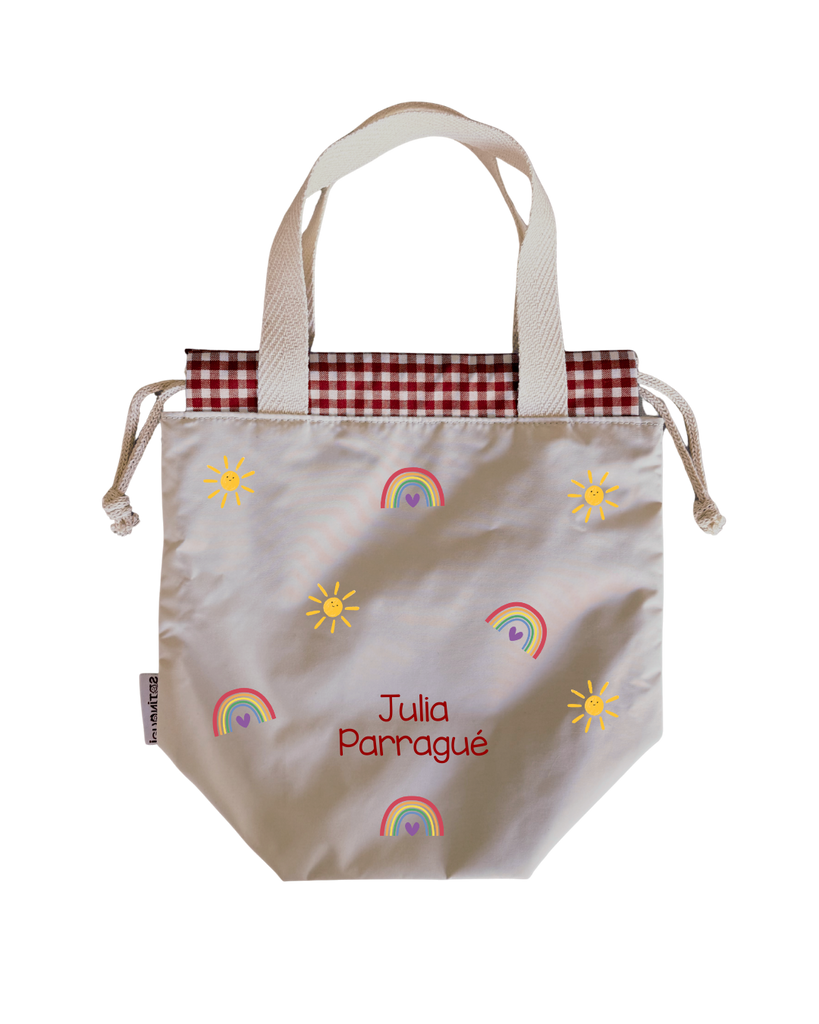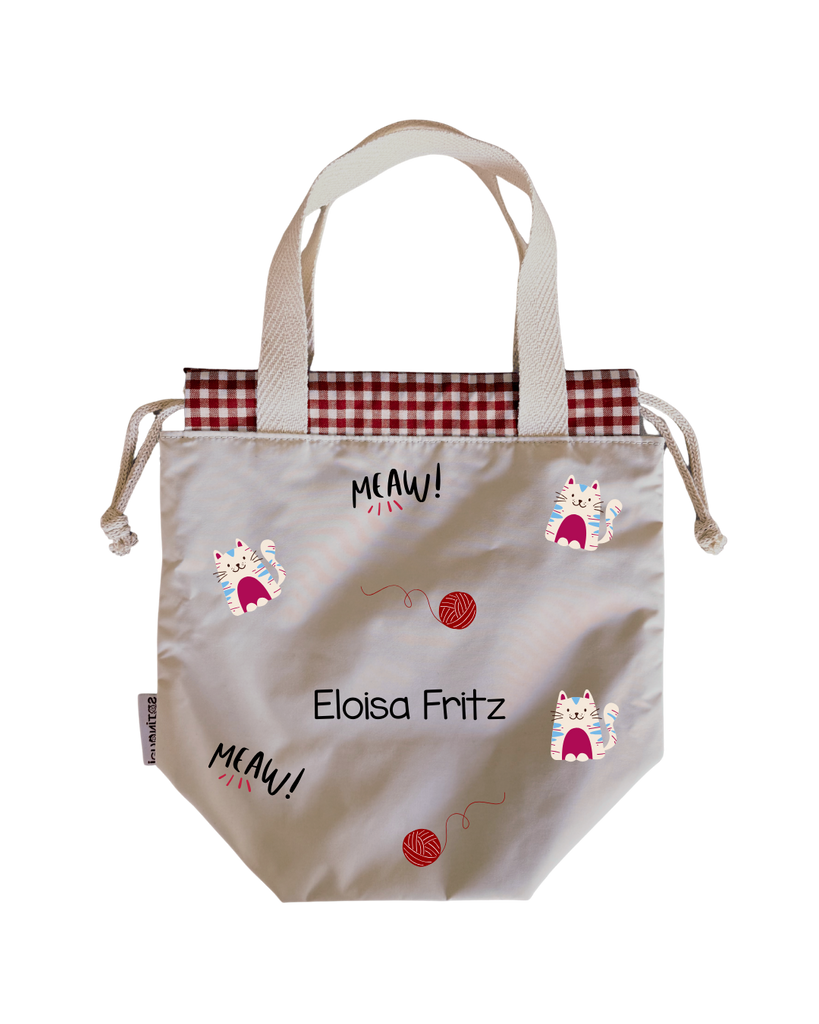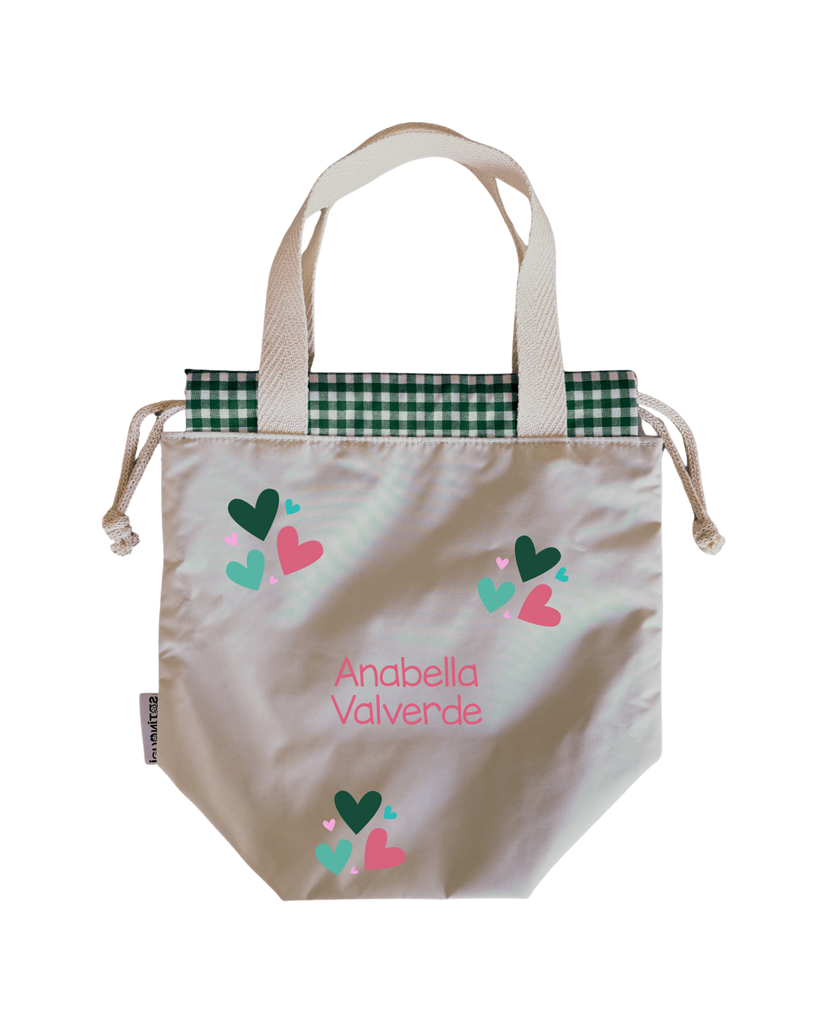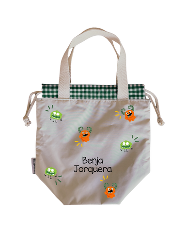 Bolsas para colación, estilo loncheras, diseñadas para ser ligeras y con impermeabilidad total en su interior y exterior. Asas y cordones de algodón.